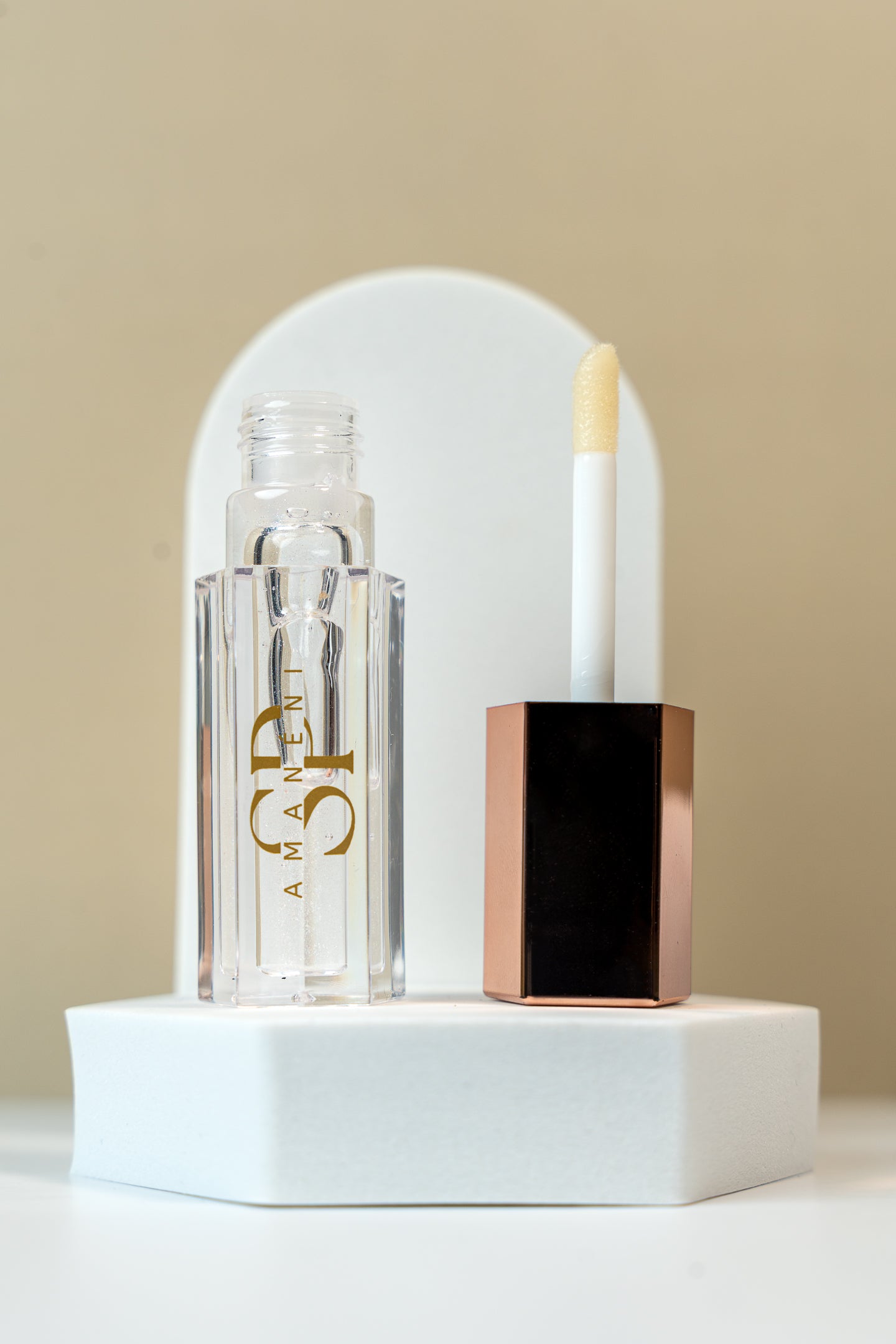 A hydrating clear gloss with fine, subtle glitter for a sophisticated sparkle. Perfect for daily wear, it delivers moisture and a luminous finish without overpowering your natural lip color.